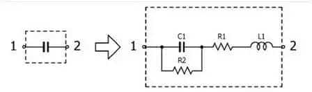 以常見的表貼式MLCC陶瓷電容為例,進行等效模型如下: