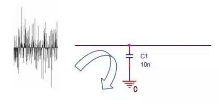 當高頻時,電容C由于阻抗Z已經(jīng)很小了,相當于把高頻噪聲短路到GND上去了。