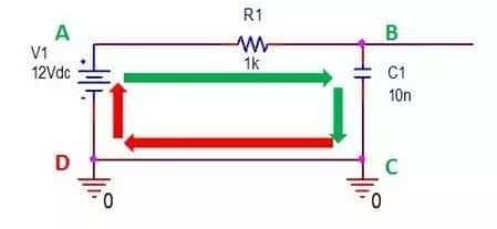 其隱含一個問題就是在PCB上其實V1的負極和C1的負極是有一條線(PCB layout工具軟件中用的詞比較準確,Trace,蹤跡/軌跡)。